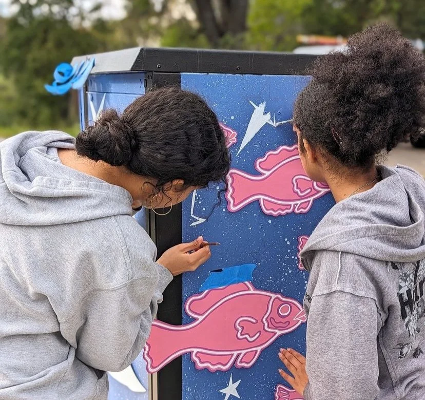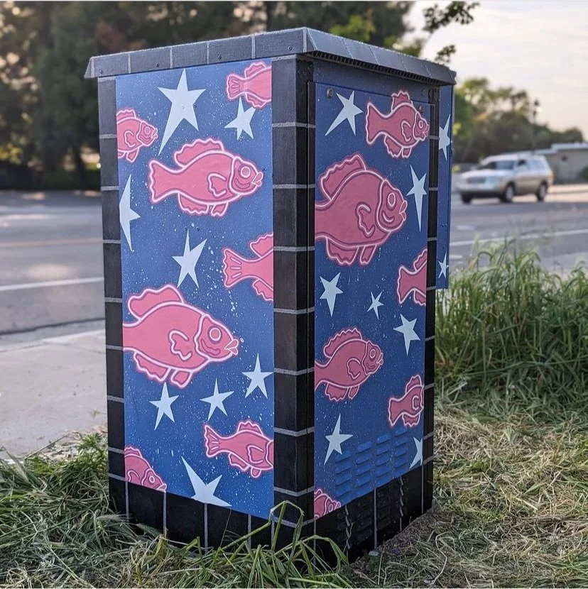 Moon Utility Box Mural2024GlassWing ArtistsAssisted: Art Escape VolunteersIn partnership with Art Escape Sonoma, Grant funded community project by MAC Spring Advisory Council